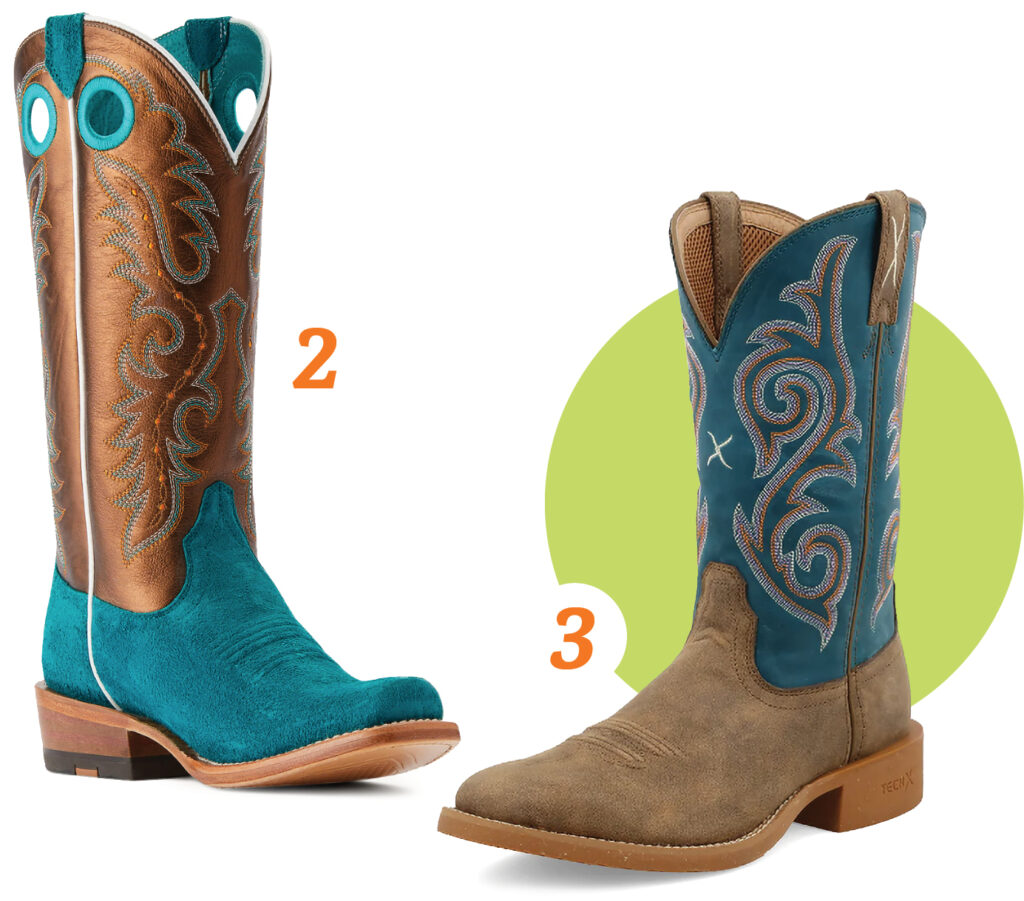 1.  For those who live and breathe the Western lifestyle, these boots (durangoboots.com) blend durability and comfort. They’re tough enough to withstand long days at the barn and look good doing it. If you wear the heels of your boots down from time spent walking at the barn, these boots have a high abrasion-resistant rubber heel lift to reduce wear on the heel. Plus, the X-Pand system, allows your boots to feel as if they’re tailored to you.
