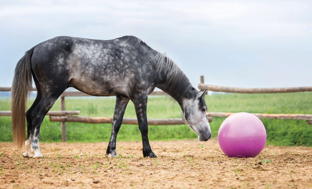 Forage boxes can provide mental stimulation and reduce boredom. Fill a large, sturdy container with strong horse-safe toys and scatter treats or grass nuts at the bottom. Your horse can then engage in foraging behavior, which is both mentally stimulating and time-consuming. It’s important to supervise him to ensure he doesn’t become frustrated or ingest non-food items.