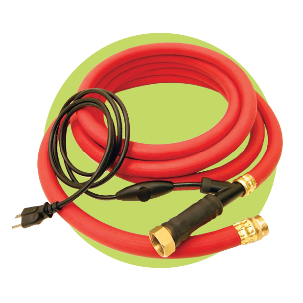 If you hate dragging frozen hoses inside to thaw in winter, this heated rubber hose is a must-have. It doesn’t have to be drained after use; instead, just plug it in and wait 20 minutes for ice-free water. Remember to still disconnect the hose from the water source when not in use. $187.99; khpet.com.