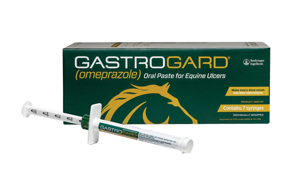 - Treat with paste: Horses with severe gastric ulcers may be prescribed an acid pump inhibitor. Omeprazole, found in GastroGard paste, can be given to your horse daily for a month for treatment. After that, a half dose can be administered for prevention.