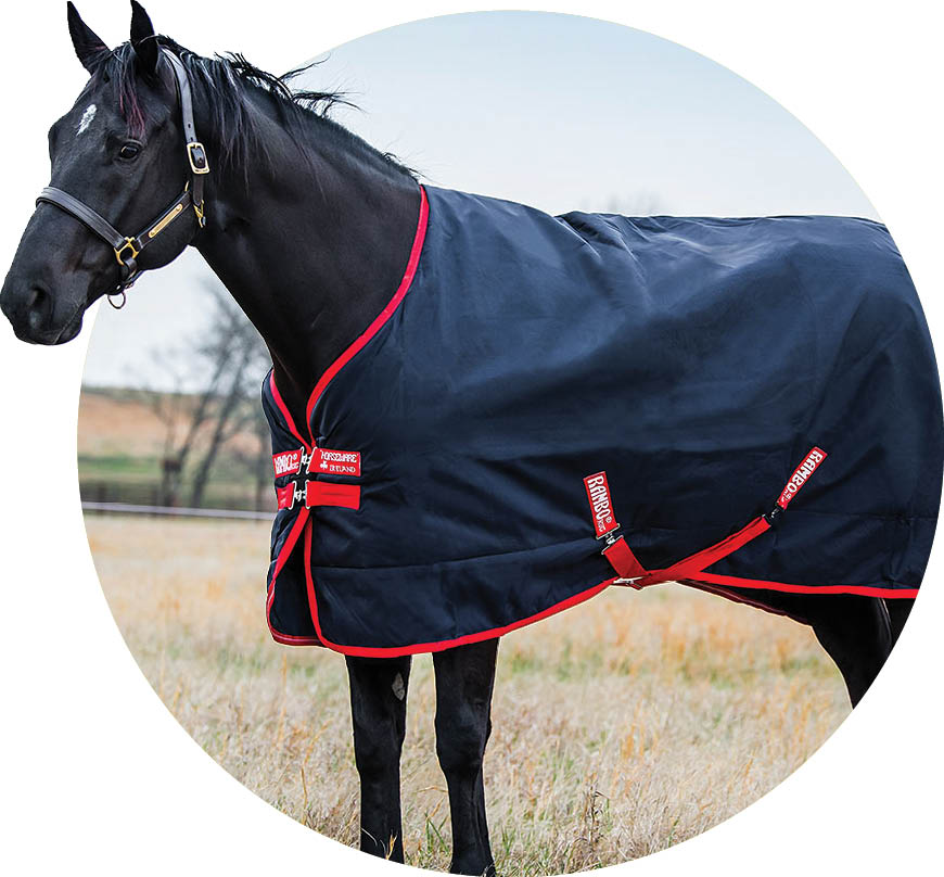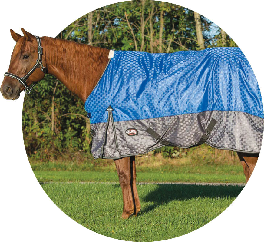 For those who find themselves with mild winter weather, this polar-fleece-lined rainsheet adds a touch of insulation and works great for those cool, wet days. It also has a two-tone design with reflective accents for added visibility at night. $112.79; weaverequine.com.