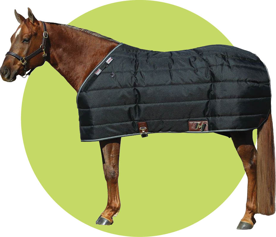 For those moderately cold days, this 200-gram thermobonded fiberfill blanket is the go-to. Providing medium-weight insulation, this blanket has an anti-static and anti-bacterial inner lining with the added bonus of being waterproof. $330; horseware.com.