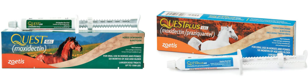 Unless specific parasites are suspected or confirmed as present, it’s only necessary to preventatively deworm for tapeworms and small strongyles every year. If no other parasites are detected, treat for tapeworms once per year. Use a dewormer containing praziquantel, such as Quest Plus. Moxidectin is typically the drug of choice for small strongyles. It should be administered at the end of grazing season before the start of winter.
