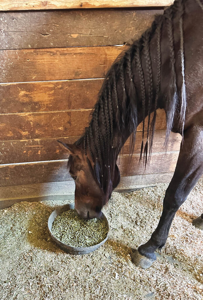 Thankfully Keira enjoys her alfalfa pellets and absolutely loves her grain. Since removing hay from her diet, we’ve seen a huge difference with her stool—no more cow patties! She’s also continuing to gain weight, and I’m finally starting to see her topline come back.