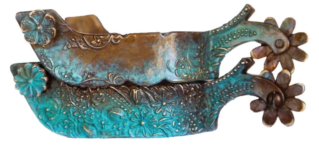 A custom pair of spurs will last you a long time. These spurs feature daisies on one side and smaller floral detail on the other with room for your customization. Choose from colors like turquoise or opt for a classic black. $625; carrollspurco.com.