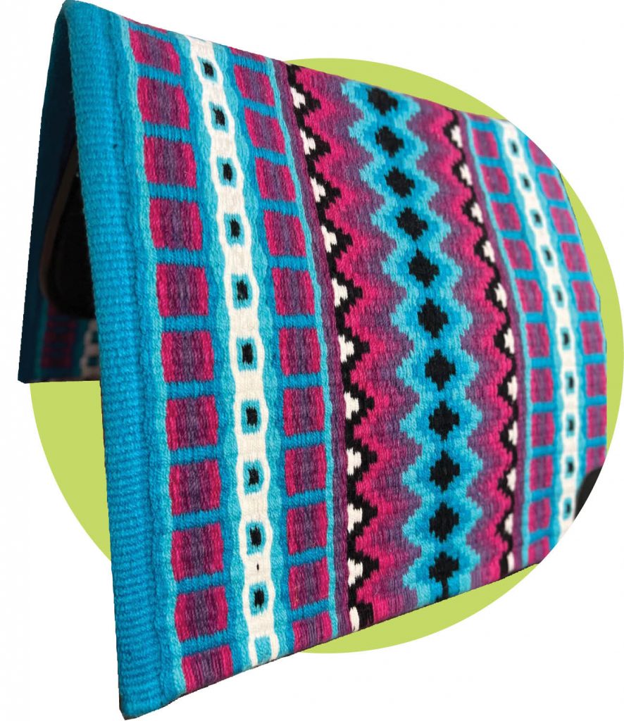 Need a pad to match your new shirt? This custom show pad has a bright and vibrant color palette with a unique pattern. With leather wears to protect the pad from cinch rubbing, this blanket will last and pair well with many outfits. $199; emcustomshowpads.com.