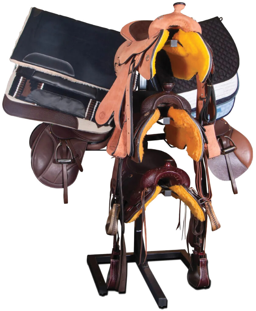 Experience a new level of convenience in organizing your riding gear with the Easy-Up saddle rack (sstack.com). Its space-efficient design sits flush against the wall, offering large-capacity storage for up to five saddles and eight pads. The system is notably easy to assemble, featuring hook-on saddle racks and pad rods, with a sturdy base for stable support. This is a must-have tool for anyone wanting to maintain a tidy tack room.
