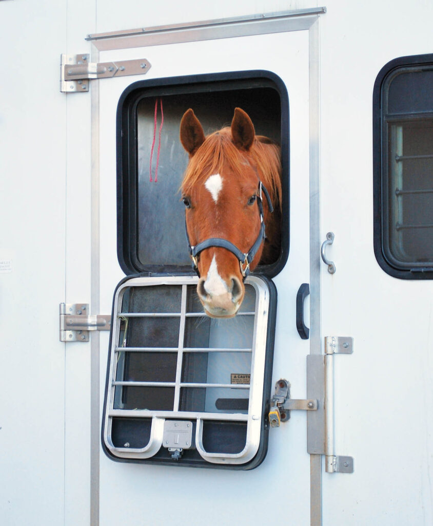 Speaking of ventilation, this is paramount to your horse’s health when in the trailer. A dusty, enclosed, and poorly ventilated trailer can spell disaster for your horse’s health. Open vents and crack windows to allow for air flow, and when you stop, stick your head in a window to get a feel for the air quality. Both hay and shavings can cause excessive dust in a moving trailer, so be cautious. My personal preference is to spread a small layer of shavings to absorb urine on trips that will be longer than an hour or so in duration.