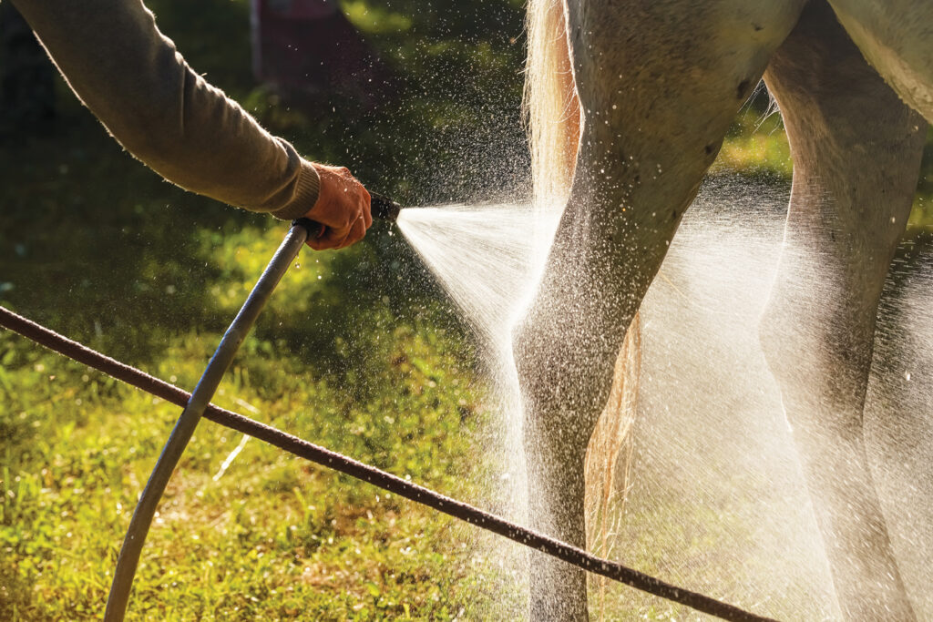 What’s the Hack? When a hydrant or wash bay isn’t available at a horse show or trailhead, a portable shower offers convenience to cool your horse down and keep him comfortable after you’re done riding. It’s lightweight and easy to store in your horse trailer. It can also help you out if you’re in a pinch and need to clean a wound, but don’t have access to a hose. Some portable showers even let you know the temperature of the water and exactly how much battery power you have left, so you don’t have to play the guessing game when giving your horse a bath.