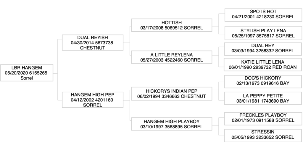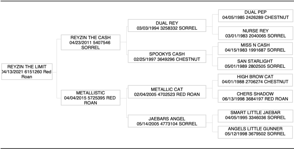 Career Highlights: Highest Earning NRCHA Horse, 2019 and 2020 NRCHA Stallion Stakes Champion, 2020 NRCHA Derby Champion, 2018 NRCHA Snaffle Bit Futurity Reserve Champion