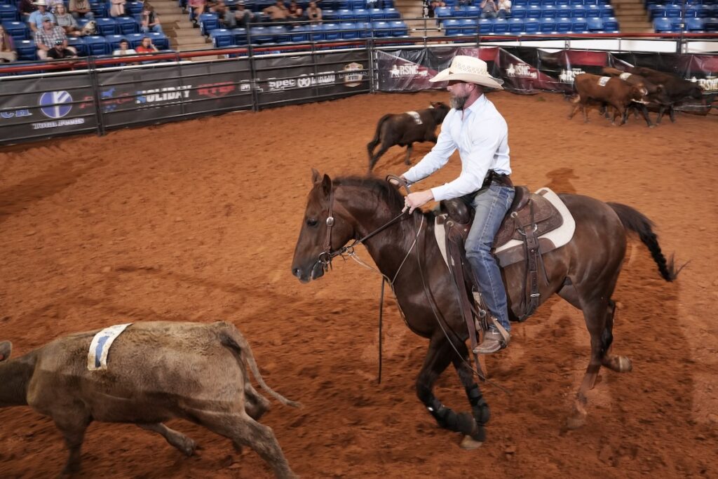 Buchanan piloted Trappin Cats (High Brow Cat x Dual Lena Pearl), a cow-smart AQHA gelding that knows his way around the sorting pen. Perkins rode Quarter Horse gelding LWR Kansas Cat (Bamacat x Meradas Rockalena), aka “Winston,” a finished cutter he describes as extremely correct and reliable under pressure.