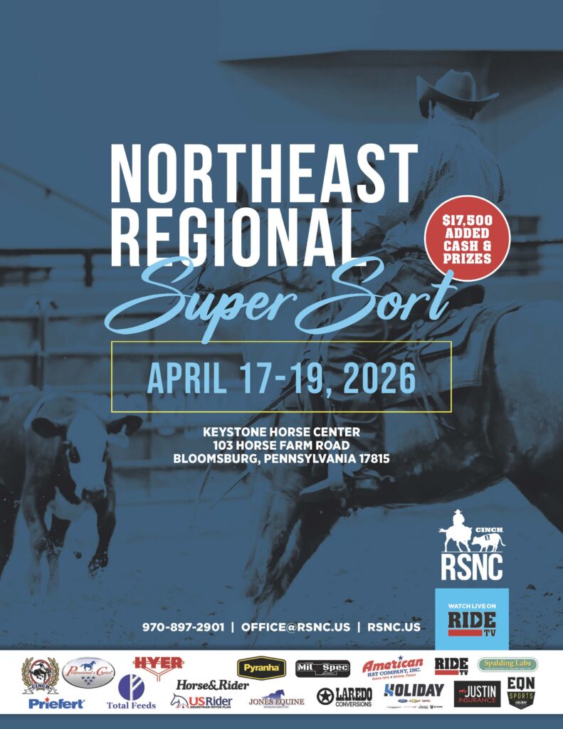 The Northeast Regional Super Sort is bringing ranch sorting action to Bloomsburg, Pennsylvania, April 17-19, 2026. With $17,500 in added cash and prizes on the line, this three day event features classes for all levels of sorters.