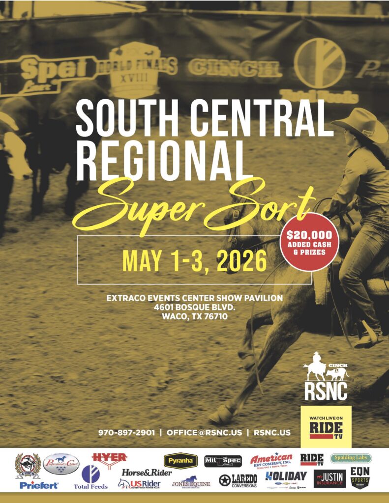 $20,000 in added cash and prizes is on the line for ranch sorters heading to the South Central Regional Super Sort. The event, running May 1-3, 2026 in Waco, Texas, features a full line-up of classes, including a judged Pro Futurity class.