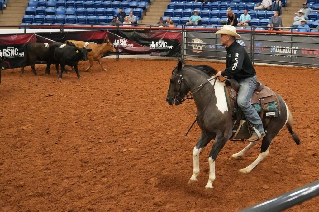 “Angela loves that horse,” said Schaffner. “He didn’t know nothing about sorting. He needed to learn a lot of things, but he was fast. I took to him, and I liked him. He’s so good minded. And then I just got him off my leg.”