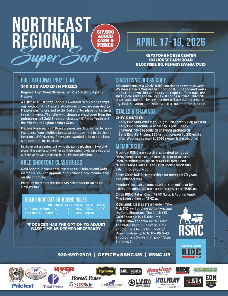 Northeast Regional Super Sort: Bloomsburg, Pennsylvania ~ Keystone Horse Center, April 17-19, 2026