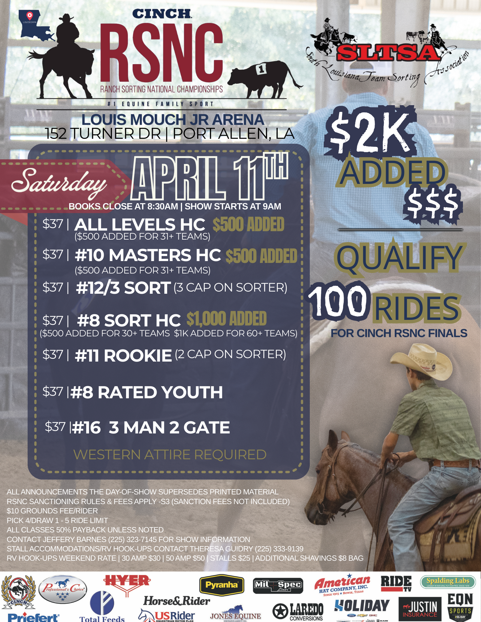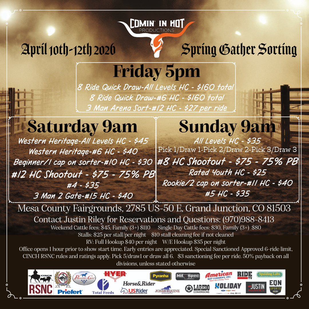 As spring settles in, the ranch sorting calendar heats up with events across the country. April’s schedule is headlined by theNortheast Regional Super Sort, April 17–19 in Bloomsburg, Pennsylvania, where riders will chase $17,500 in added cash and prizes in one of the month’s premier competitions.