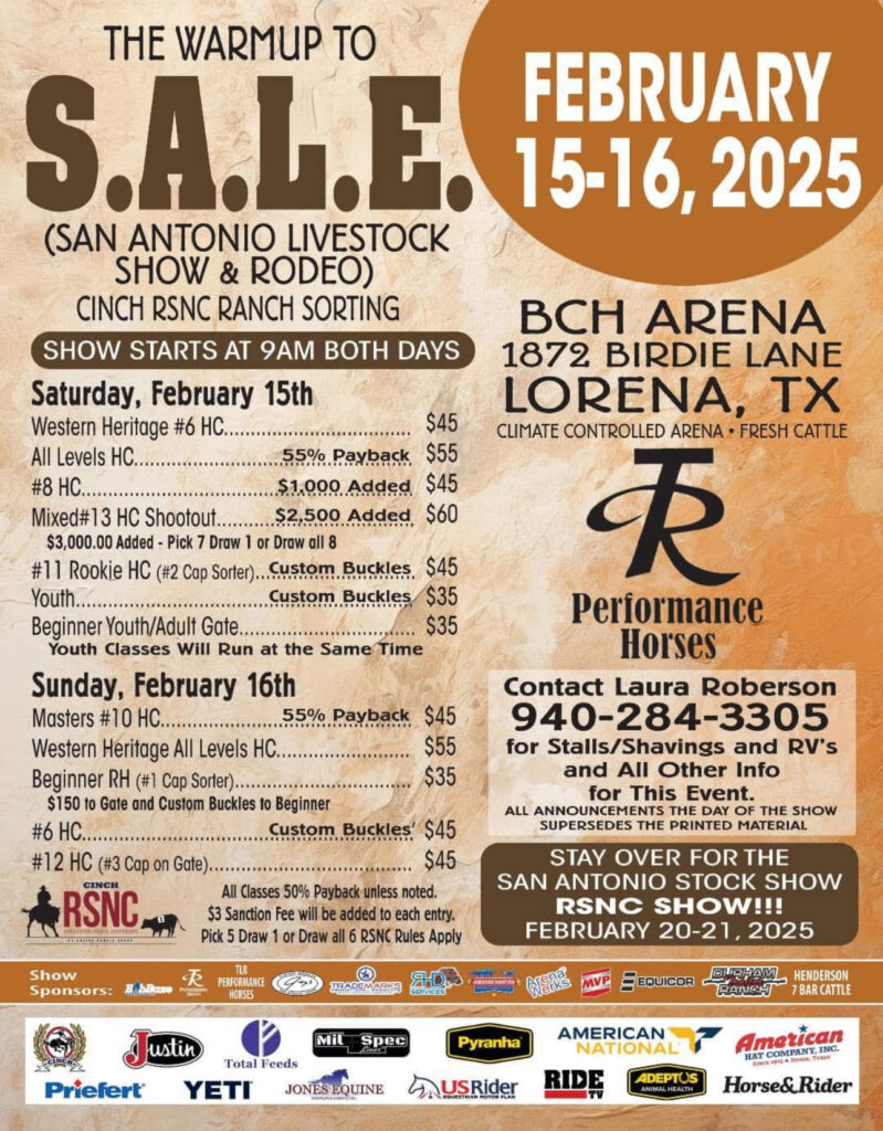 Be a good Valentine and take your partner to these ranch sorting events in February. Headlining the month is the Cinch RSNC San Antonio, held in conjunction with the major San Antonio Stock Show & Rodeo, where ranch sorters can compete for $15,000 in added money, Feb. 20-21.
