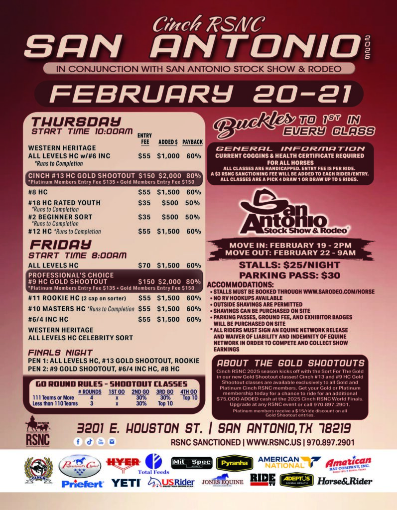 The Cinch RSNC San Antonio will be livestreamed on Ride TV Feb. 20-21, 2025. To watch, simply log in to your account.