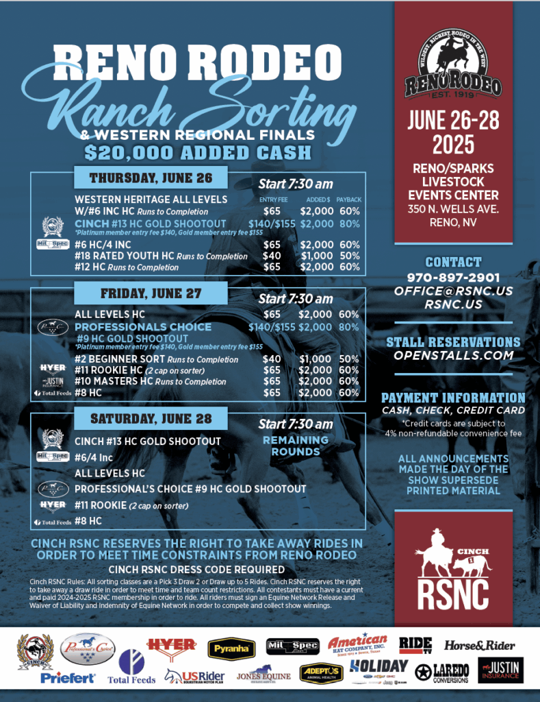 Reno Rodeo $20,000 Added Western Regional: Reno, Nevada ~ Reno Sparks Livestock Event Center, June 26-28, 2025