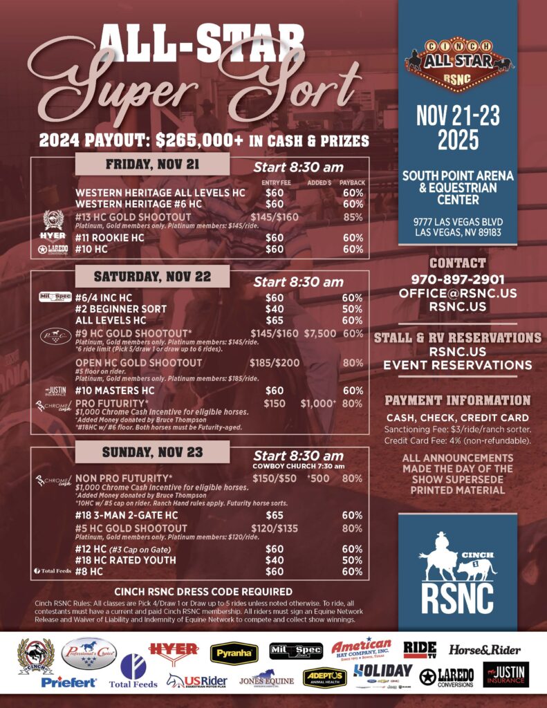 November is here, and there’s plenty to be thankful for, especially more chances to get in the pen! The All-Star Super Sort, happening Nov. 21–23 at the South Point Arena in Las Vegas, Nevada, is one you’ll want on your calendar. After paying out nearly a quarter million dollars last year, this year’s event is set to raise the bar even higher. Rally your ranch sorting crew and get ready for an unforgettable weekend in Vegas!