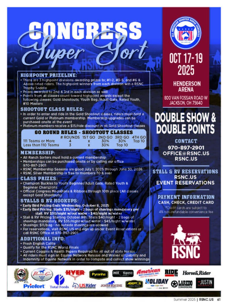 It’s October, and that means it’s time for the Congress Super Sort! Held in the Henderson Arena in Jackson, Ohio, the event will award an estimated $100,000 in cash and prizes to ranch sorters. Run in affiliation with the All American Quarter Horse Congress, the Super Sort features classes for riders of every level.