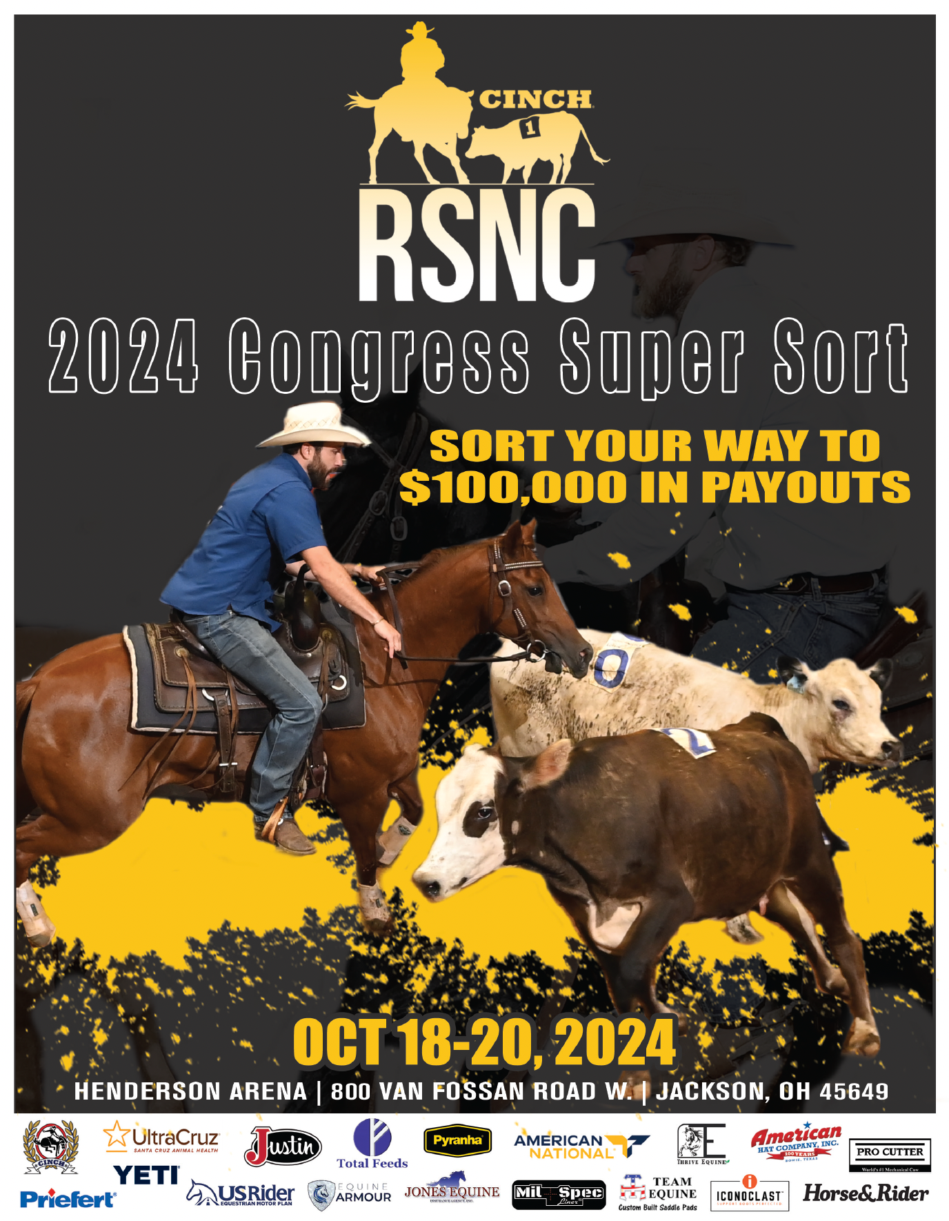 The Cinch RSNC is hosting the 2024 Congress Super Sort in Jackson, Ohio, Oct. 18-20, and paying out $100,000 to ranch sorters of all levels competing at the Henderson Arena.