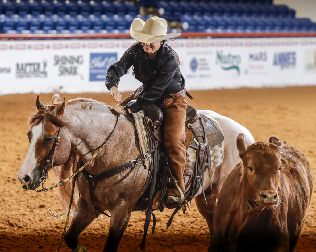 To win the event, one horse and rider team will come out on top with the highest composite score across the four events. Heading into the Saturday Finals Night, the field is lead by Todd Crawford aboard One Time Legend, owned by Larry Hall Cutting Horses, with a composite score of 885.5.