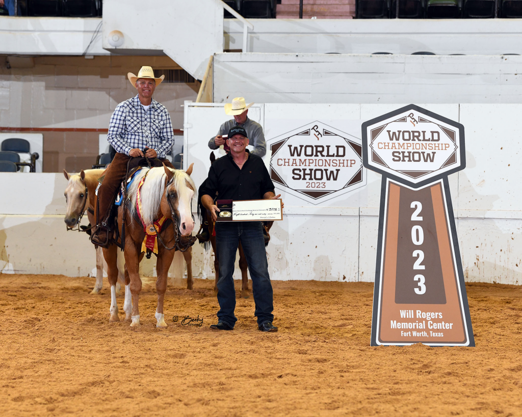 The reserve champion of the RHTCC ranch rail is Jeff Honey and Hollywood Hot Gun. Pete Kyle and KR Smart Dreamer became the first ever IRHA reserve world champs.