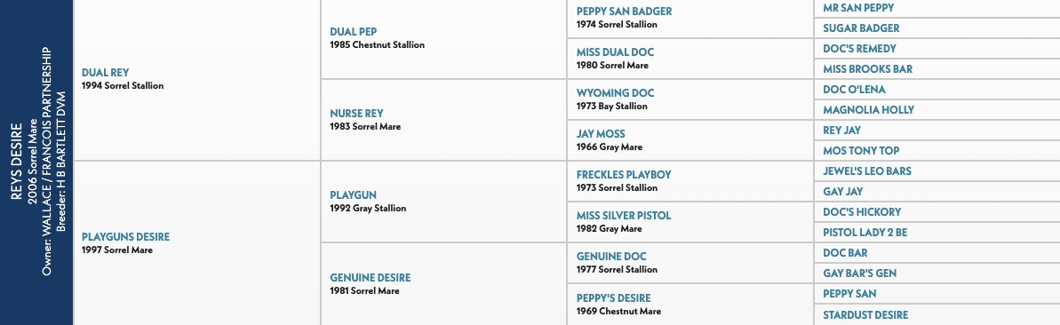 For years, Reys Desire was a cornerstone of Bartlett’s cutting program. He bred her to One Time Peptos, Spots Hot, and Once In A Blu Boon.