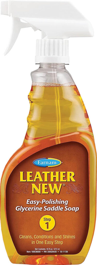 • Clean thoroughly: Use a leather cleaner to thoroughly clean tack, including bridles, saddles, and reins. This removes any dirt or sweat buildup that’s accumulated during the riding season.