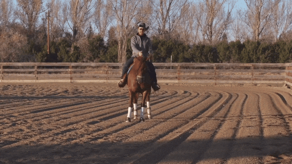 “If my horse is stiff and they try to come out of it early, I’m going to pull ’em around with both hands like this to move their shoulders and soften them up.”