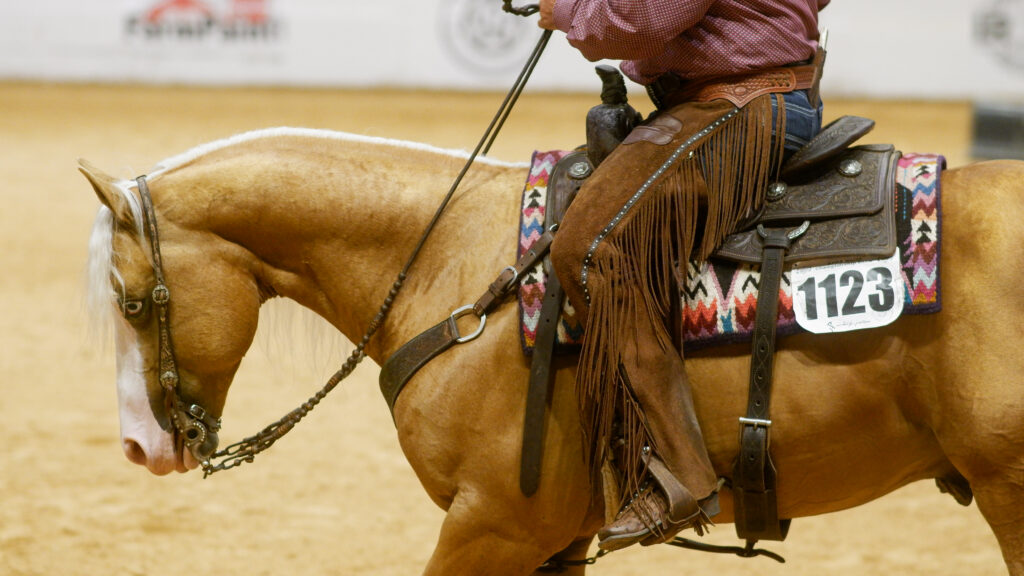 The ranch classes also open a door for folks to compete that don’t own the saddle with all the silver. With functional and working ranch tack recommended, the pressure is off to have the flashiest gear in the pen. One of the most enjoyable parts of watching the ranch classes is seeing the beautiful working gear used by exhibitors. Some rode with a coiled rope hanging from their saddle, others zipped up chaps showing wear from years of hard use. The beautiful colors of the show pads mixed with traditional gear like the classic romel reins or mecate reins, adds to the charm.