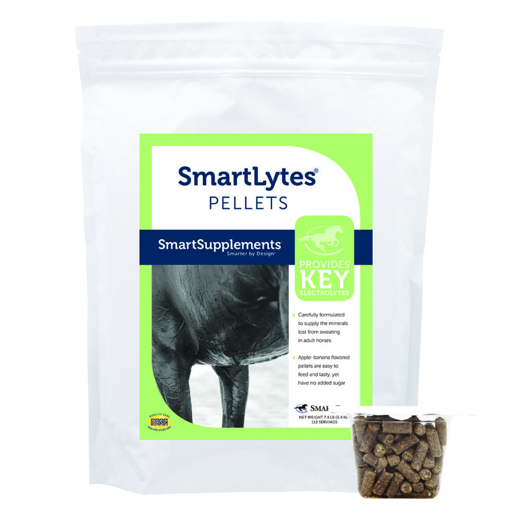Offering a supplement like SmartLytes® Pellets, can supply essential things your horse needs. This includes sodium chloride and other electrolyte minerals that are lost in sweat. Photo courtesy of SmartPak.